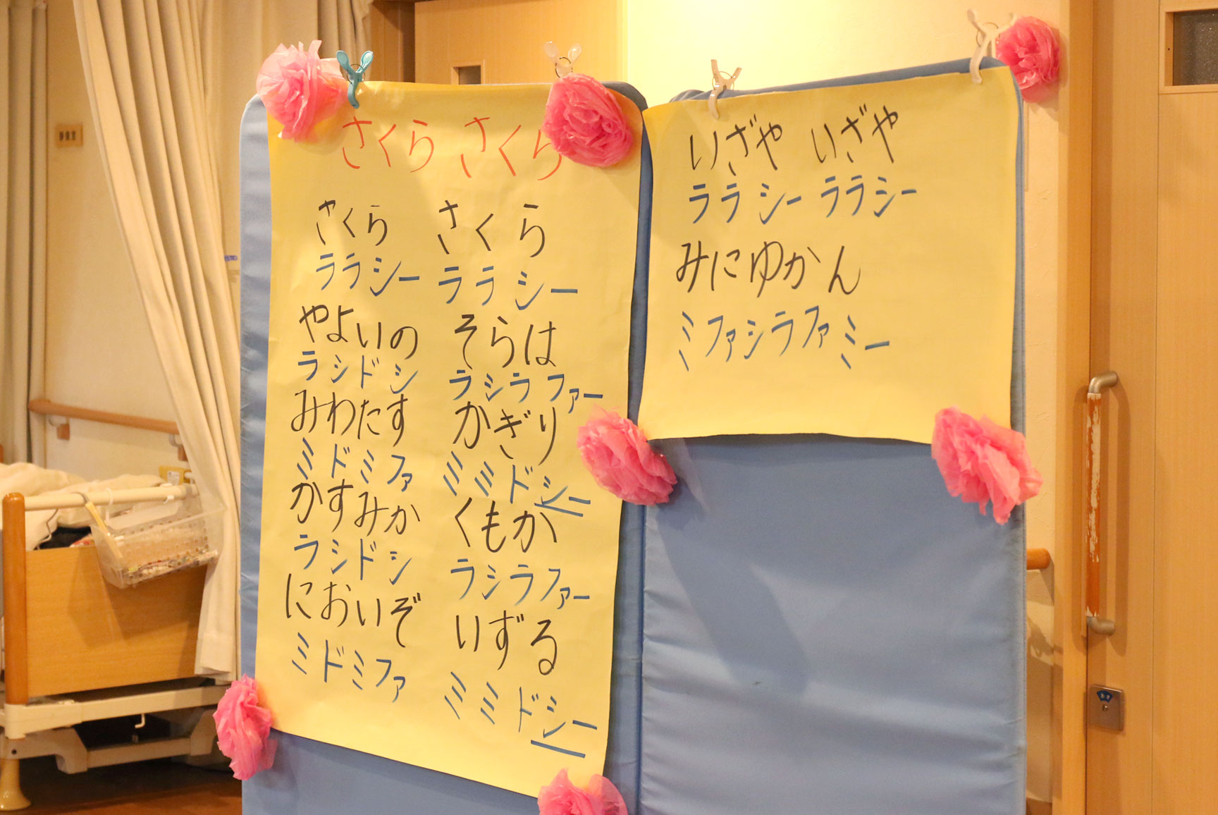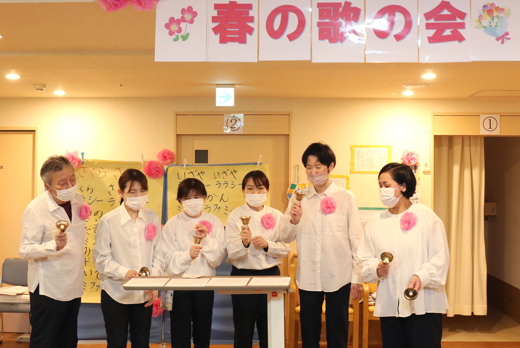 ハンドベルの後は「ふるさと」「春の小川」「春が来た」「北国の春」など、春の歌をたくさん歌いました。