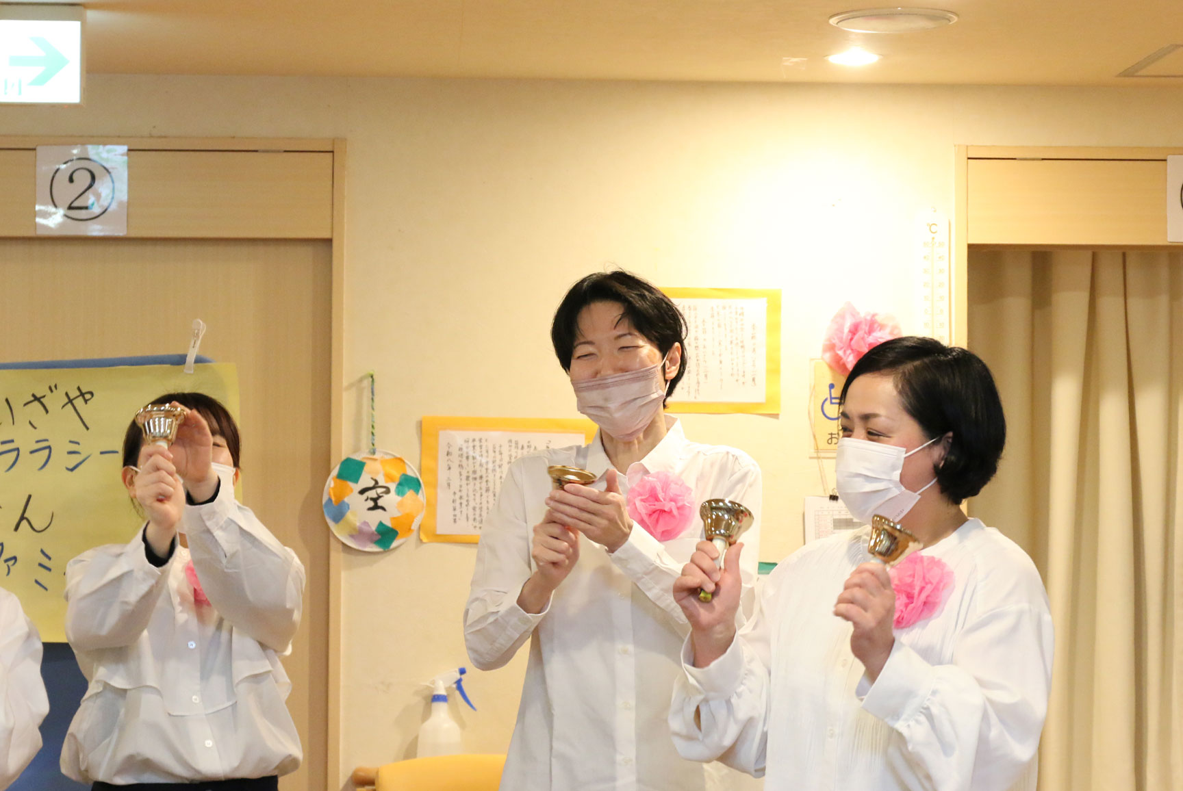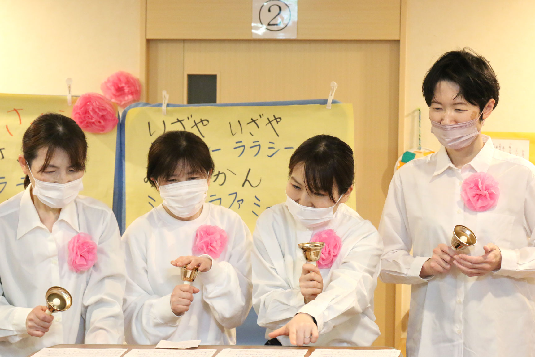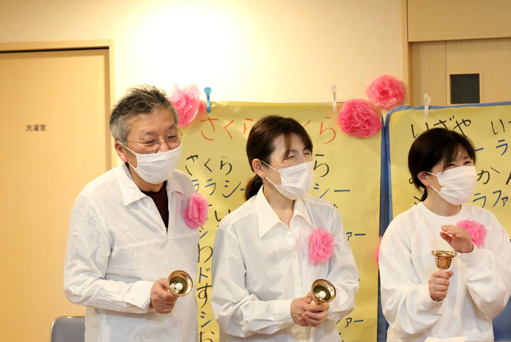まずは、職員達がハンドベルで「さくらさくら」を演奏しました
