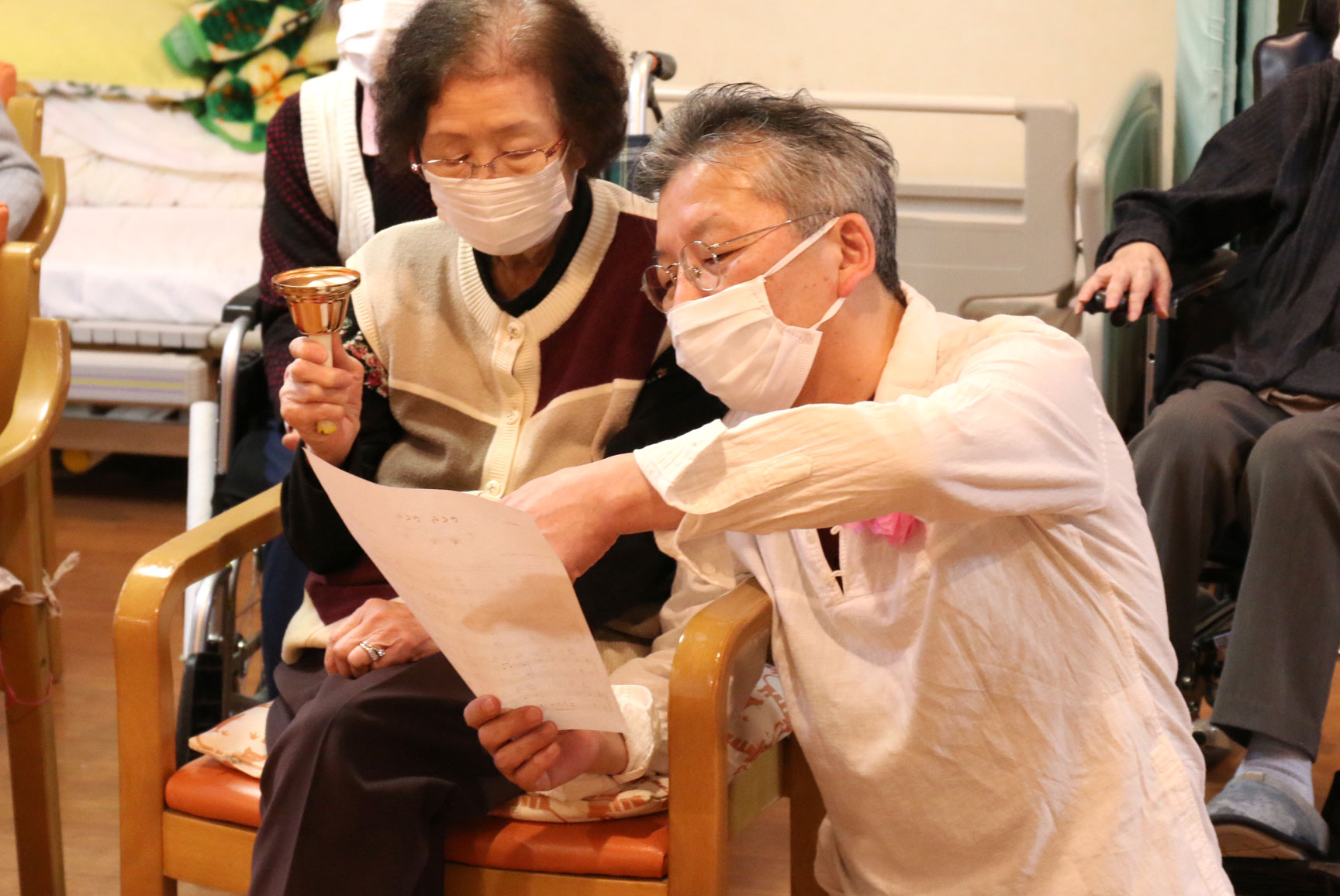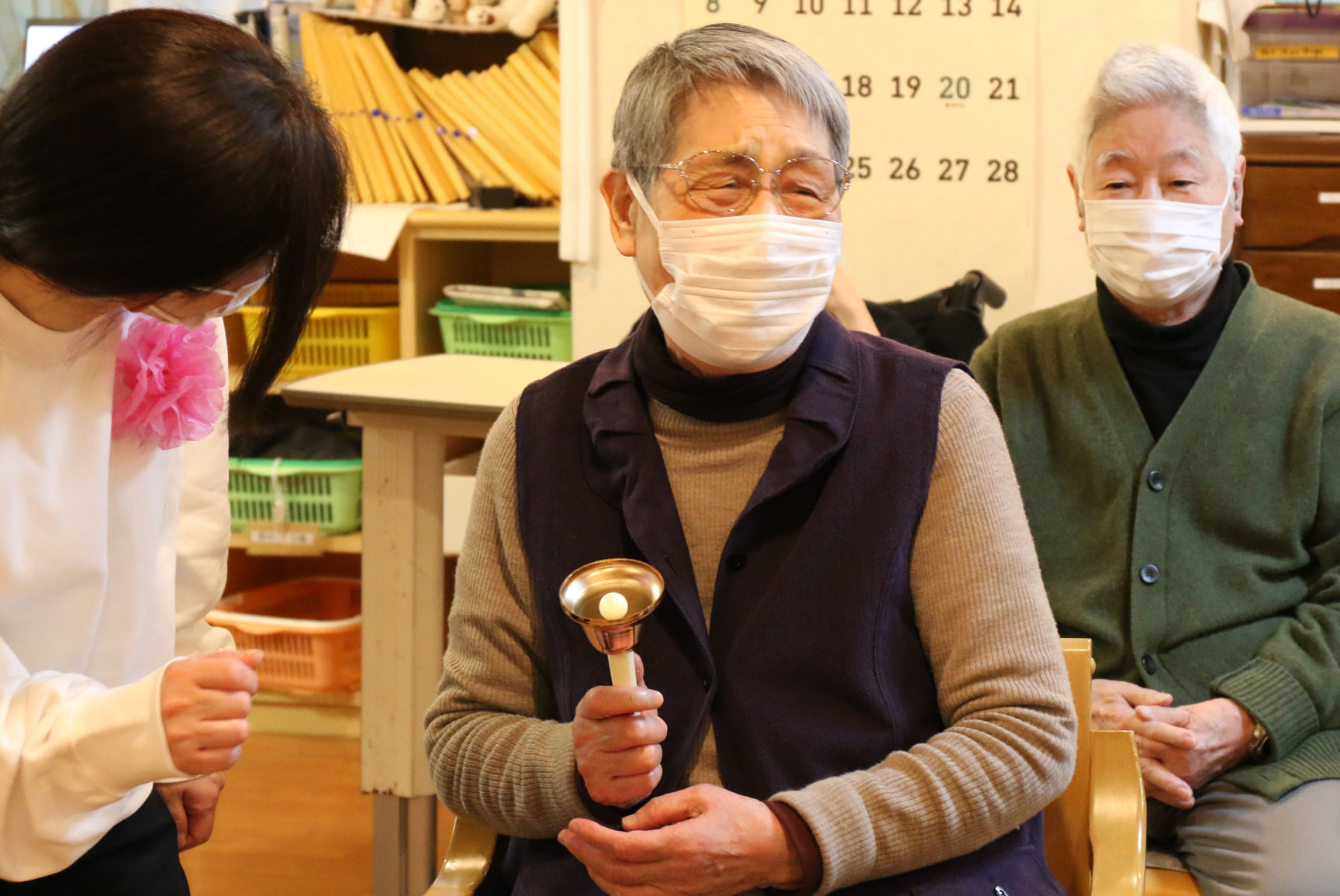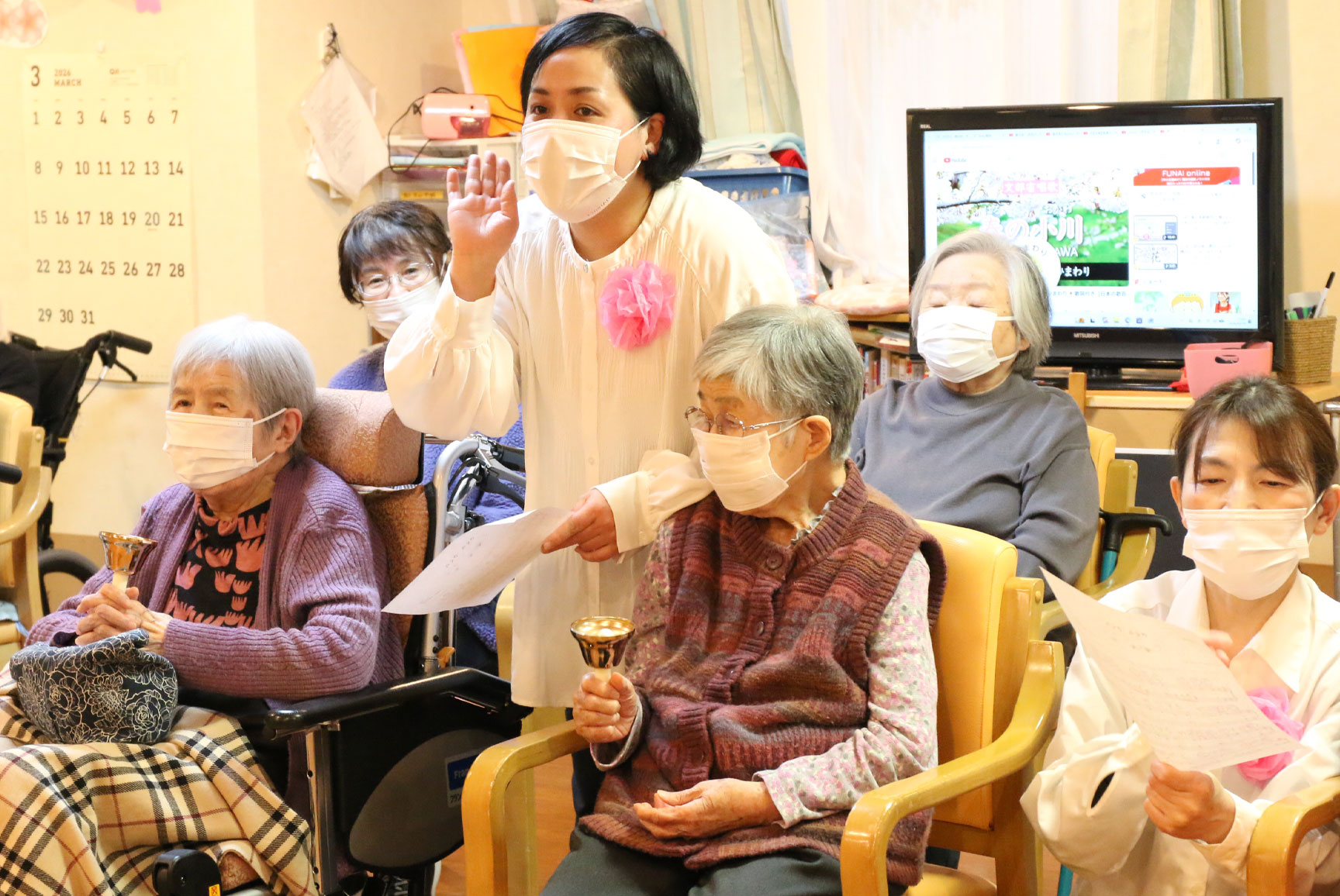 まずは、職員達がハンドベルで「さくらさくら」を演奏しました