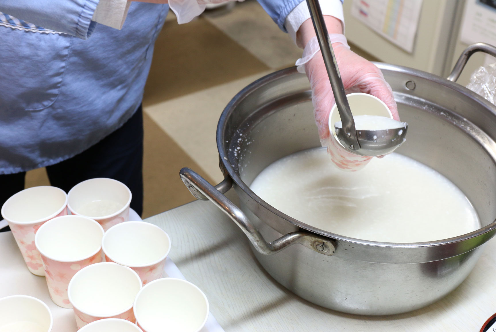 そして、喉がちょうど渇いてきたところに厨房より手作り甘酒が届きまして、おやつと一緒にいただくことに