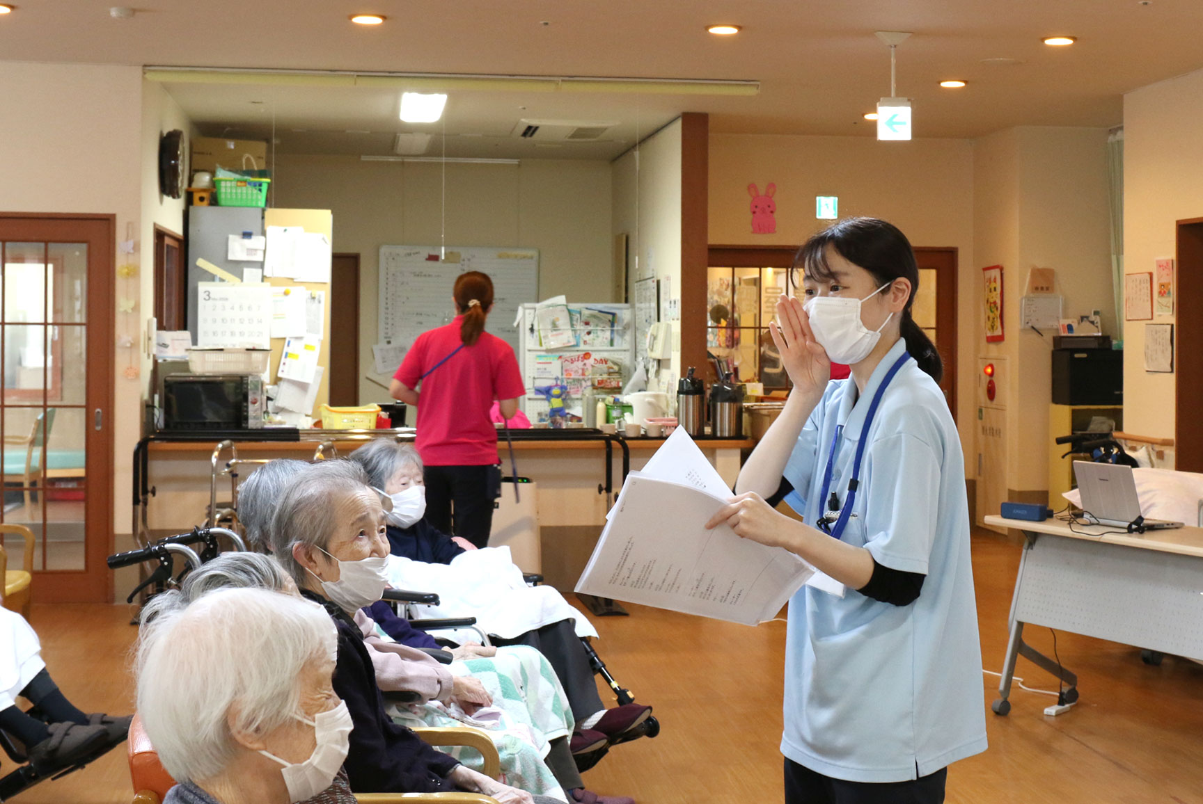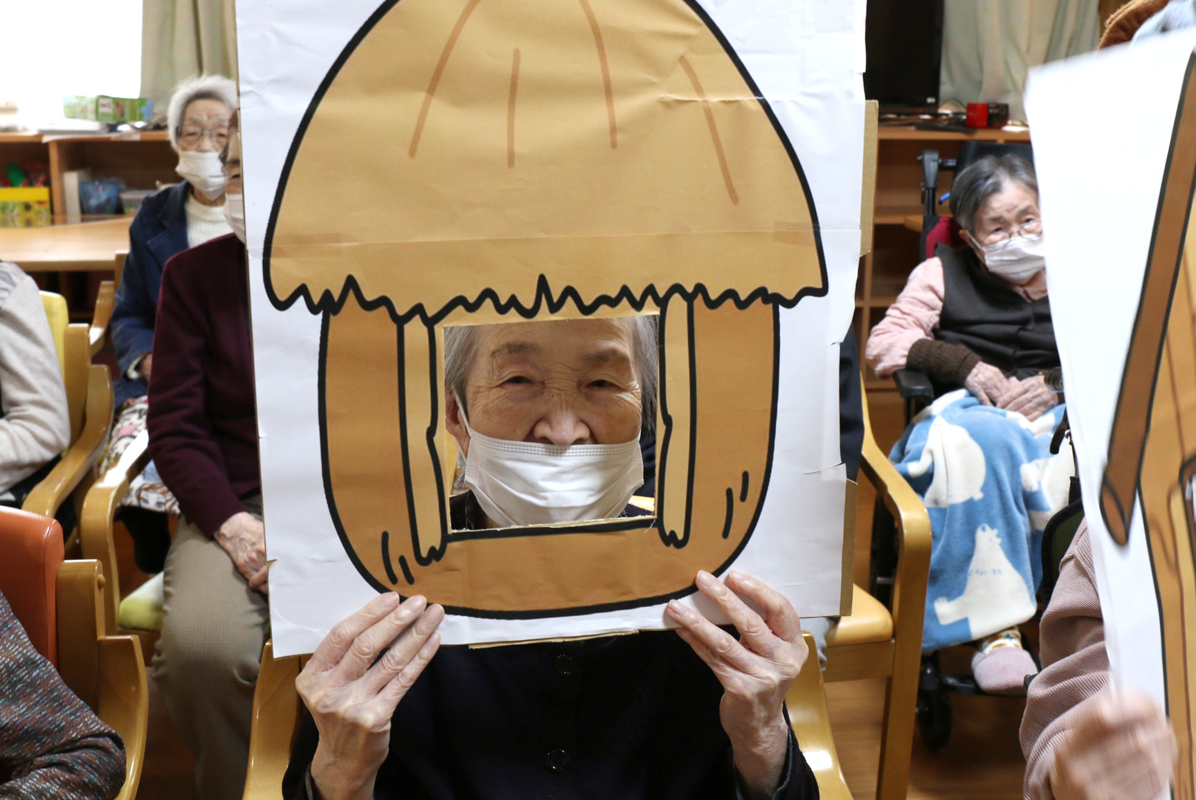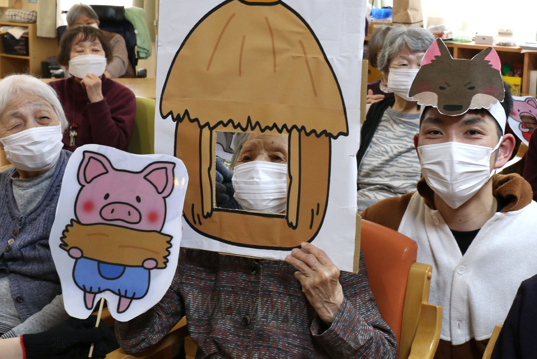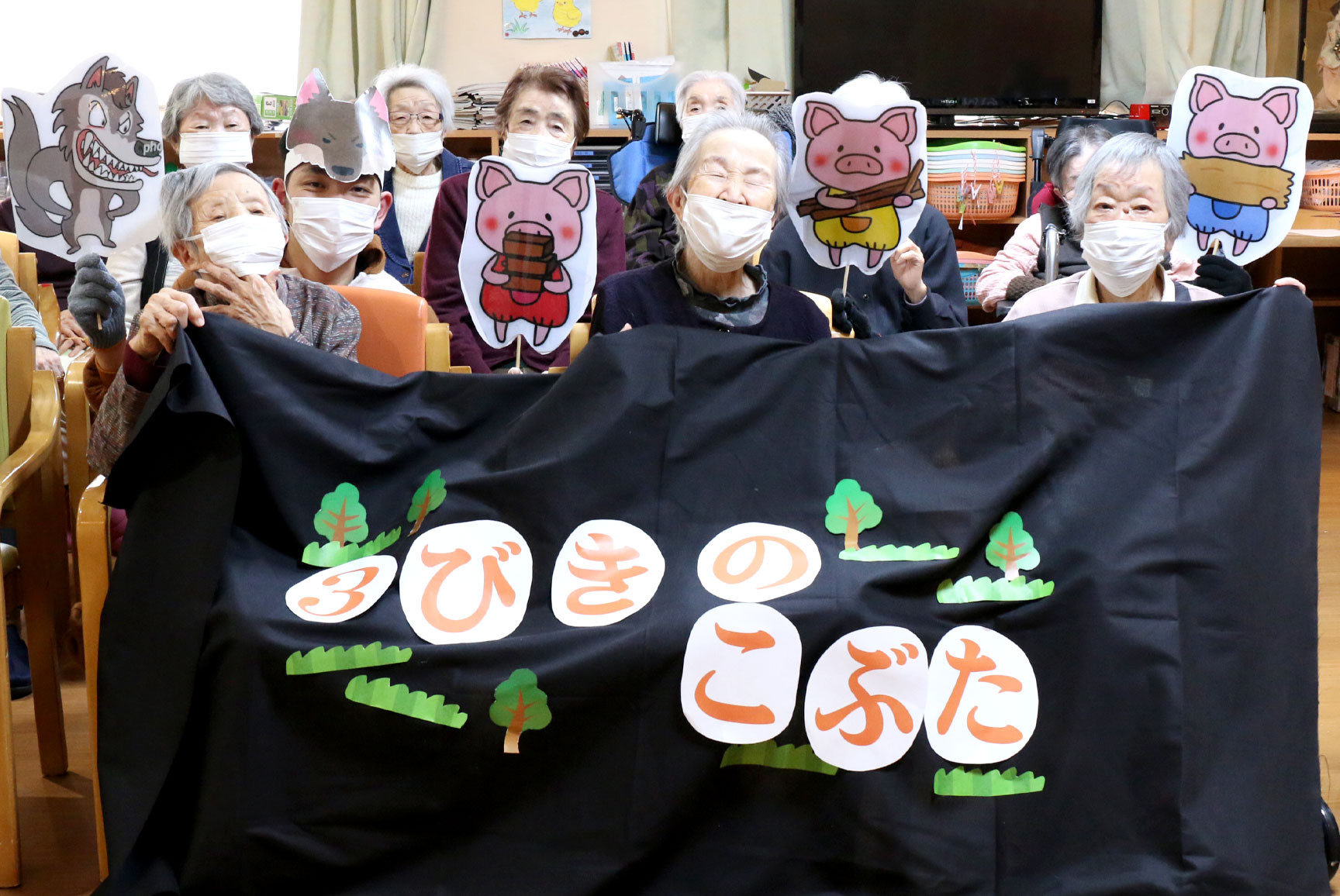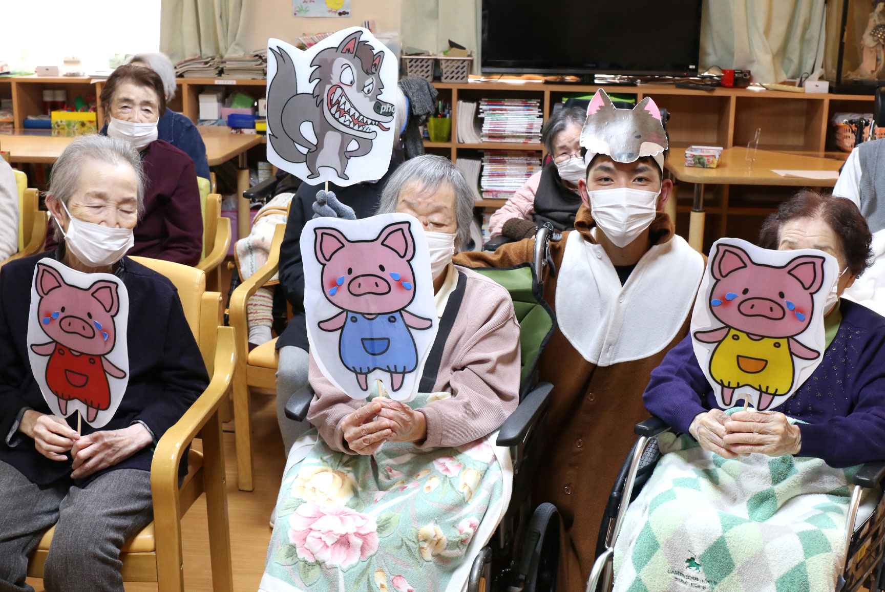 「あちちちち 」と、オオカミ役の職員、近藤さんがご利用者様の周りを走り回りました(^^)