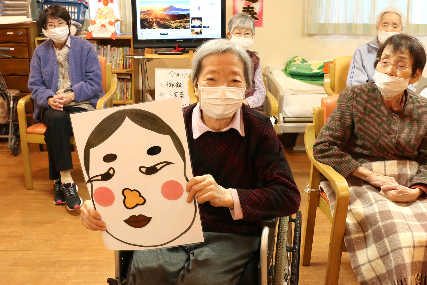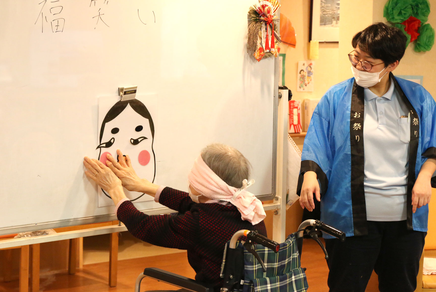 皆さまにはお正月らしく福笑いに挑戦していただきました
