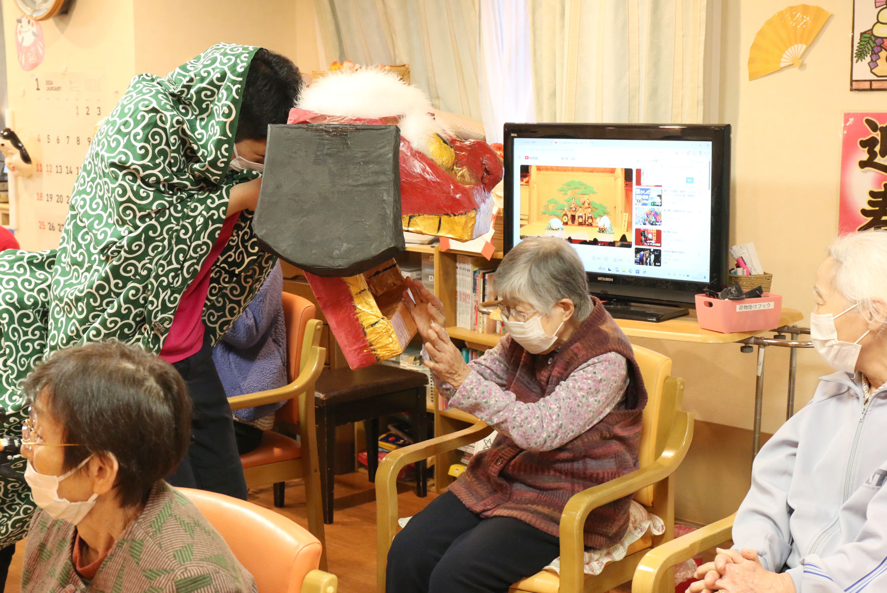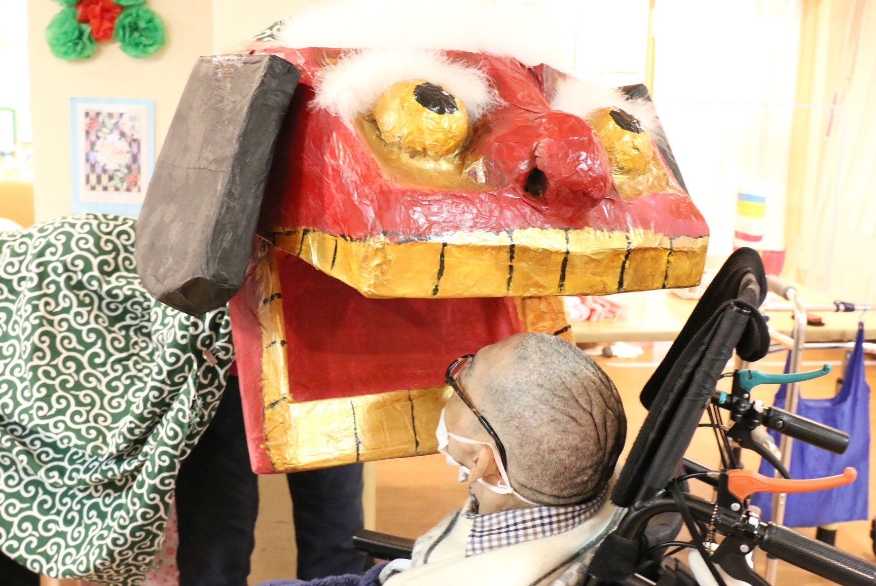 この獅子舞さん、よく見るとけっこうお茶目な顔をしていませんか