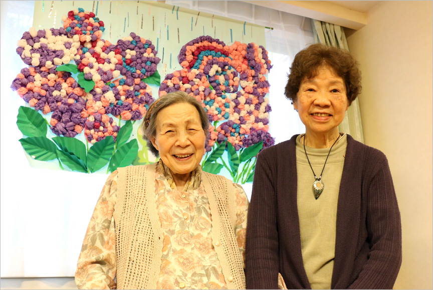 こちらは6月の作品、紫陽花をバックに記念撮影。